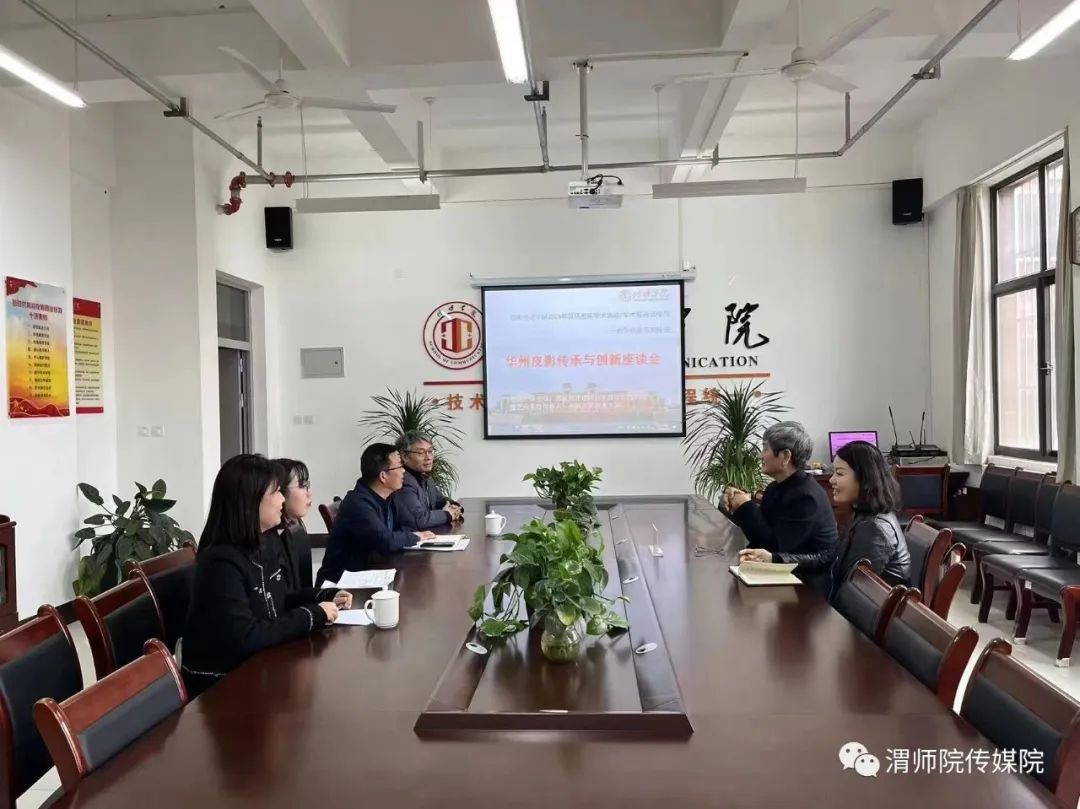 讲座结束后,相关教师代表在富平校区1105会议室参加了座谈会,曹熙斌院长介绍了学院在皮影方面的研究情况,教师代表依次介绍了自己的科研方向,并与薛宏权在皮影风格动画作品创作、皮影艺术理论研究、高级别艺术项目合作申报等方面进行了深入交流。