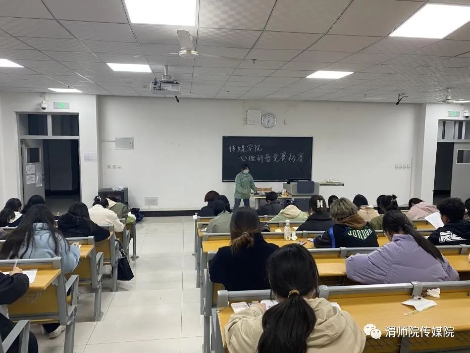 为传播和普及心理健康知识,增强学生心理健康意识,引导学生养成正确的心理健康观念。根据渭南师范学院第六届“阳光护航“心理育人”宣传季实践活动安排,4月3日晚,传媒学院在富平校区主教学楼108教室举办心理科普知识竞赛初赛。由学院心理专干、专职辅导员李嘉欣担任监考教师,60余名学生参加比赛。