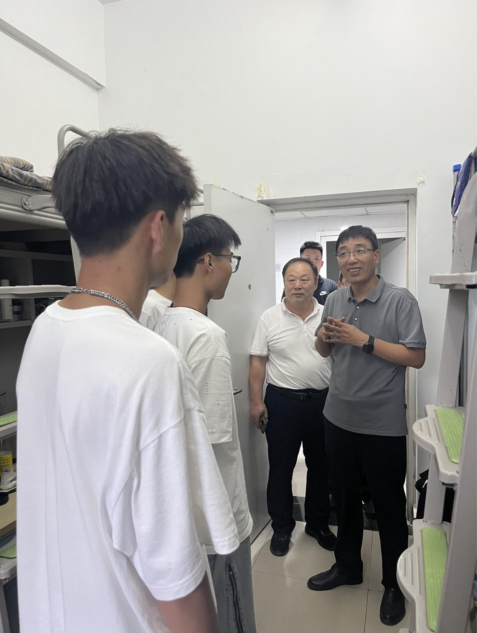 汪书记、韩书记及学院领导先后走访看望新生男生宿舍及女生新生代表,向23级新生的到来表示欢迎。在走访过程中,亲切地与新生们交流,询问他们入住是否习惯,认真了解了新生的生活需求,叮嘱他们大学四年要不断提升自己,有目标追求,加强与学校老师和辅导员沟通,同时提醒新生珍惜大学四年时光,期待他们在新的平台发展自身优势,积极展现自我,在学校绽放光彩,实现自我价值。