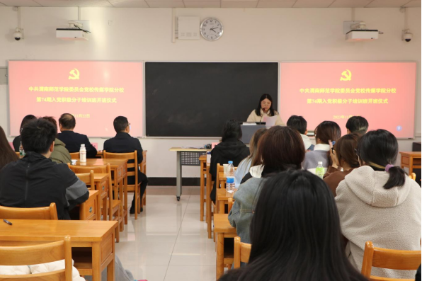 为进一步提高入党积极分子的政治素质和理论修养,确保新发展党员质量。根据学校党委组织部相关要求,传媒学院党总支于2023年11月22日下午在富平校区教学楼1110教室举行第74期入党积极分培训班开班仪式。学院党总支书记田康顺、院长曹熙斌、党总支副书记周双、师生融合党支部全体委员及31名入党积极分子参加开班仪式,会议由党务秘书侯美颖主持。