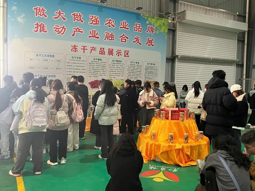 陕西和昌诚农业发展有限公司总经理吴亚锋,热情接待了来调研的三个学院的师生。吴亚锋向前来调研的师生介绍了公司发展历程、发展目标、业务范围和特色产品等,围绕企业的创业历程,分享了企业成功的经验和面临的问题;在吴亚锋的带领下,师生深入企业生产一线,参观了公司冻干果产品的生产加工过程;同时,吴亚锋向与我院教师就校企合作及本次农产品营销策划与产品包装设计方案征集大赛具体事宜进行了进一步的沟通。