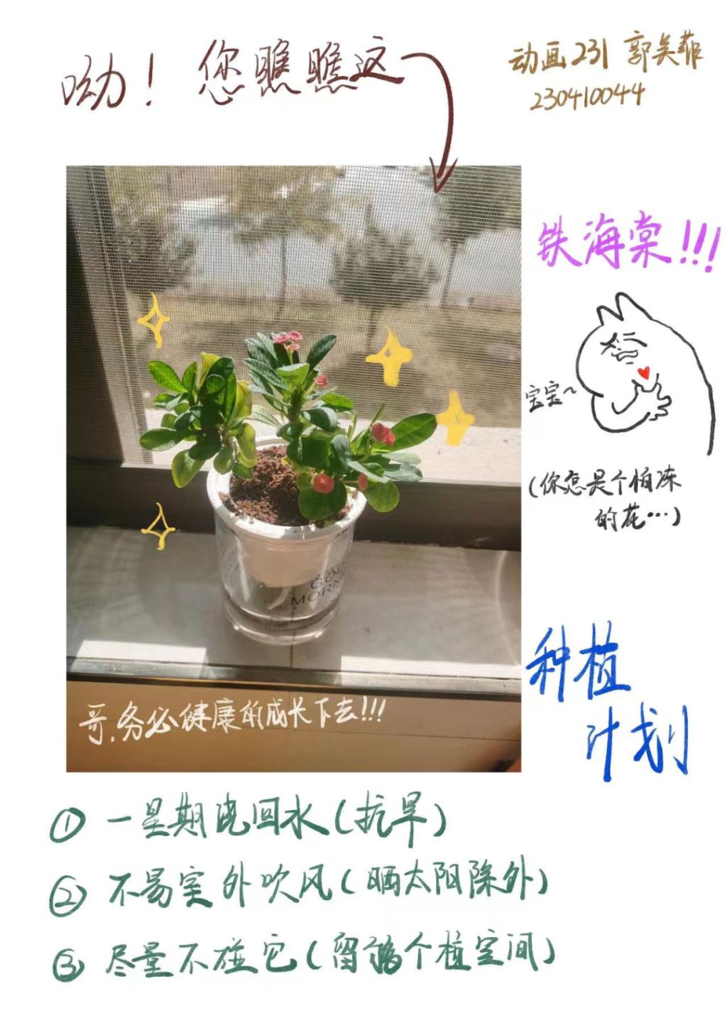 每一位领养者通过制定合理的种植计划,更好地关心和呵护属于自己的绿色小空间。共同书写与绿植的成长篇章,也为大家提供了一个积极向上的心灵角落,激发青春活力,让校园成为心灵成长的温室。