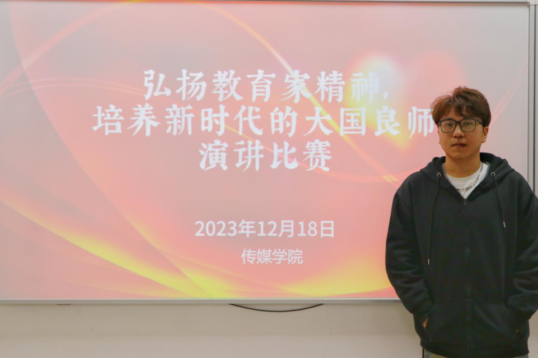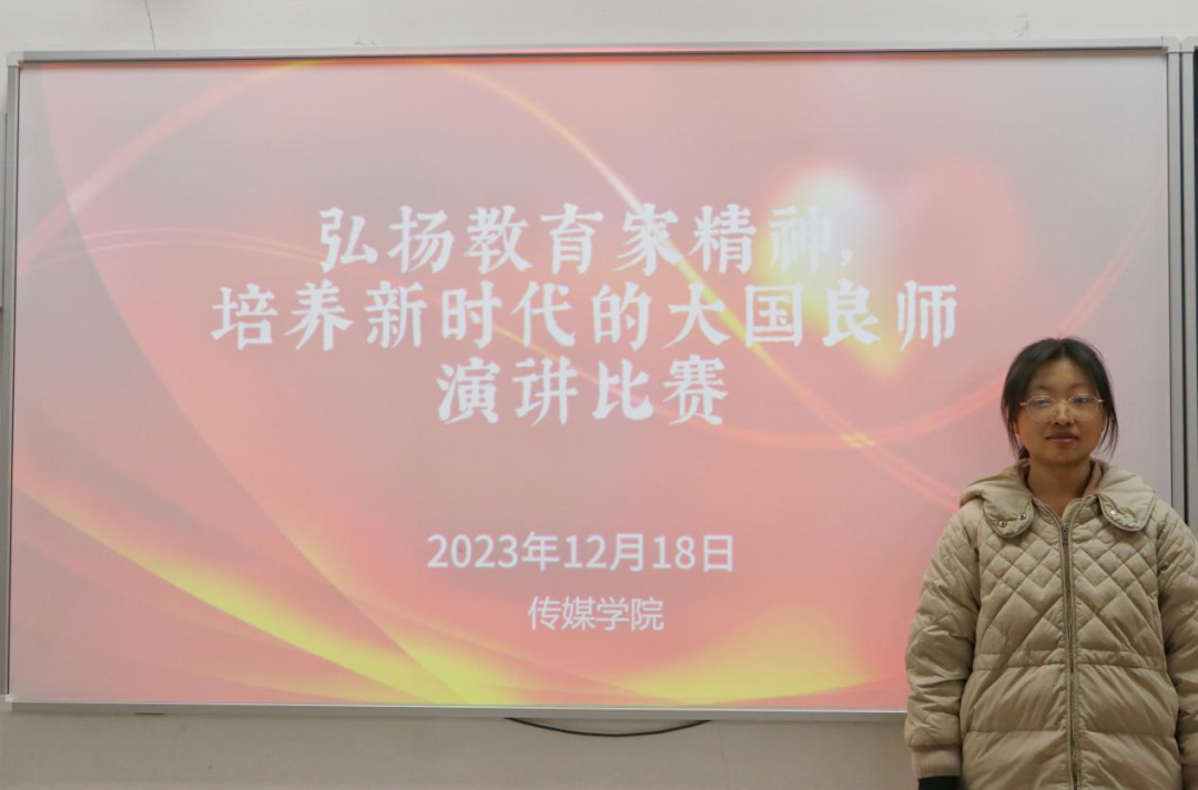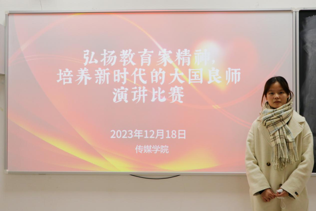 百年征程波澜壮阔,百年初心历久弥坚,教师是立教之本,兴教之本。为进一步学习贯彻习近平总书记致信全国优秀教师代表精神,引导学生树立“躬耕教坛、强国有我”的志向和抱负,弘扬“心有大我、言为士则、启智润心、勤学笃行、乐教爱生、胸怀天下的教育家精神”。12月18号下午,传媒学院于110教室举办“弘扬教育家精神培养新时代大国良师演讲比赛”初赛。