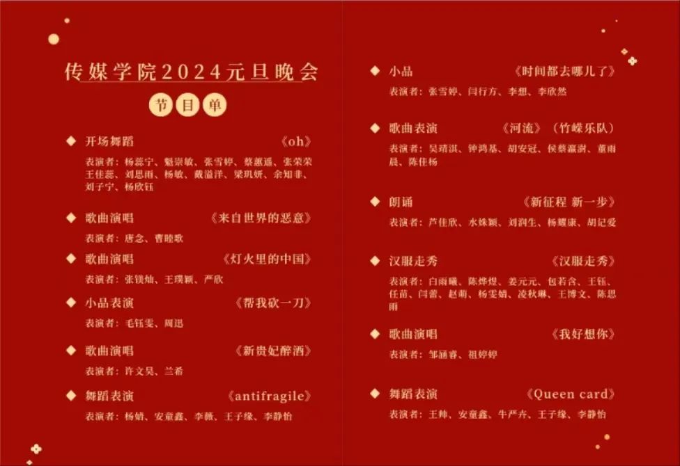 传媒学院2024年元旦晚会节目单