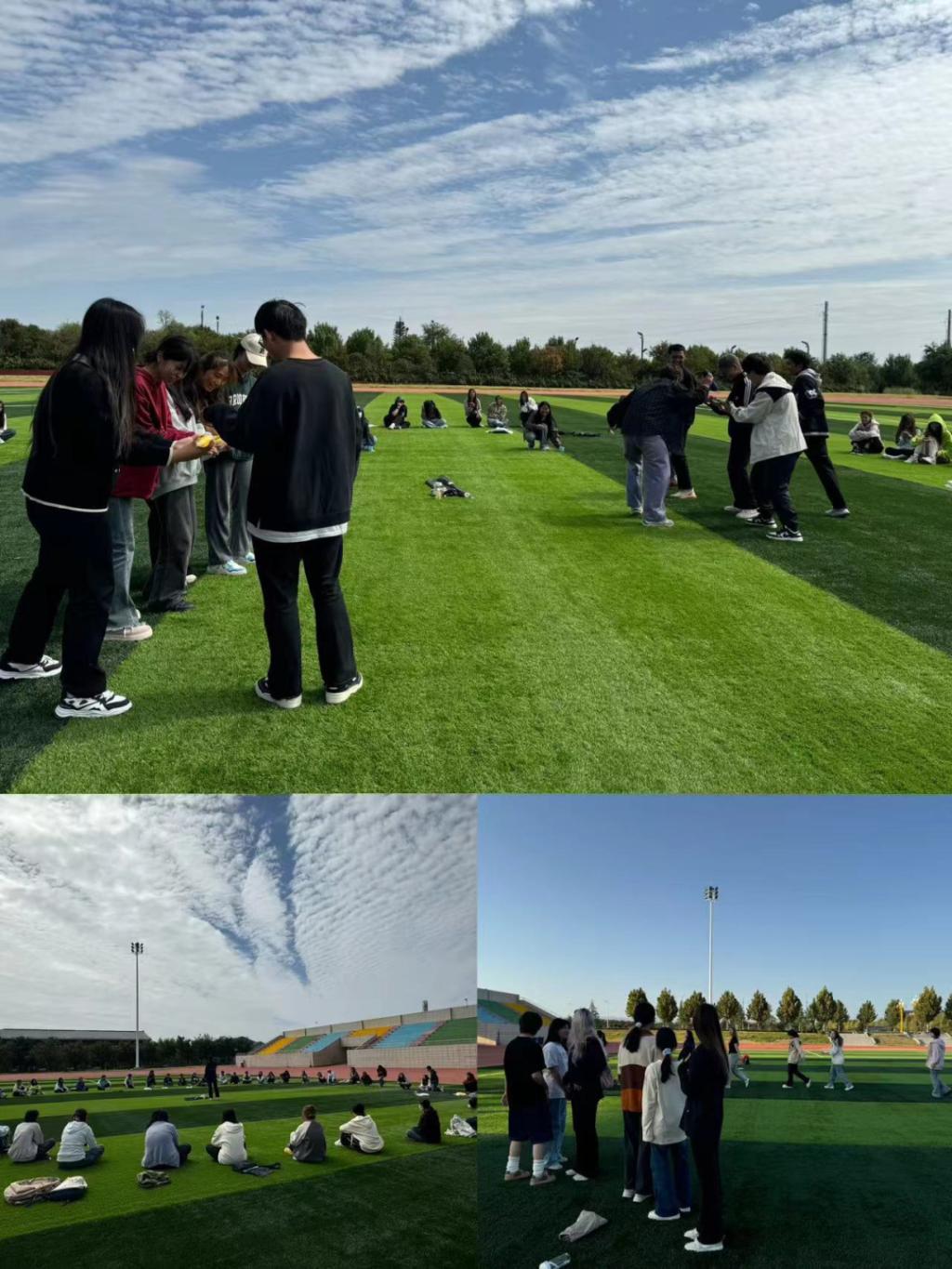 传媒学院专职辅导员李嘉欣带领2024级新生在富平校区田径场进行入学适应性团体辅导活动,带领学生沉浸式体验“无家可归”“大风吹”“心有千千结”“珠行万里”等破冰游戏,帮助学生更快适应校园生活,提高新生班级团队凝聚力。
