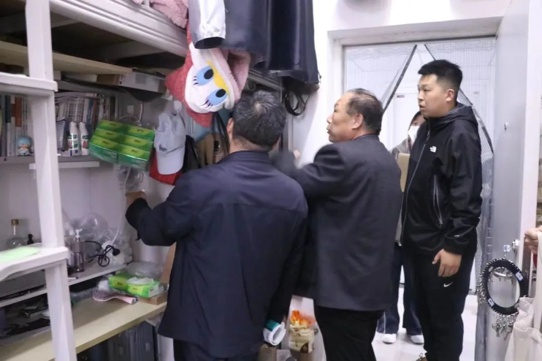为进一步加强学生宿舍的安全管理,强化学生的安全责任意识,督促学生养成良好的卫生和生活习惯,创建安全、整洁、文明的学习和生活环境。4月29日,学院党总支书记田康顺、院长曹熙斌带领专职辅导员一行深入学院学生公寓宿舍,对学生宿舍存在的安全隐患逐一进行排查。