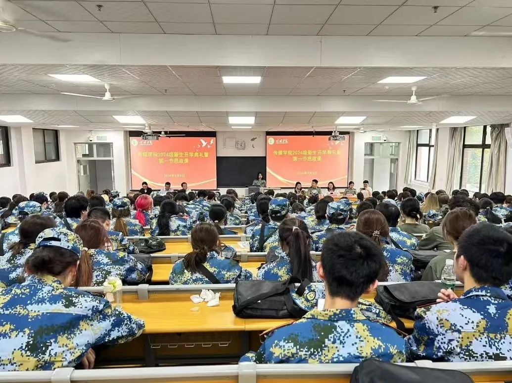 传媒学院2024级新生开学典礼暨开学第一课的圆满举行,展现了学院对209名新生的热烈欢迎和殷切期望。新学期,新起点,新征程,愿传媒学子放飞梦想、收获成功!