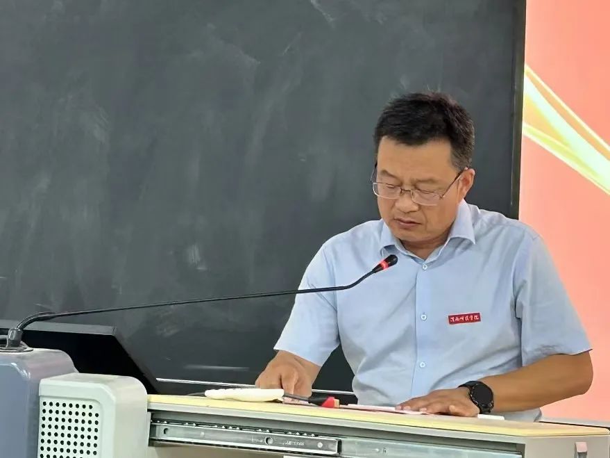最后,党总支书记田康顺作总结发言并开讲开学一课,主题是“迎接新挑战,走向美好未来”。希望同学们明确责任和使命,传播正能量,弘扬主旋律,树立正确的价值观和道德底线。他向新生提出了顺利开启大学新生活的建议:一是制定明确的学习计划,培养独立思考和创新能力;二是积极参与学校活动与实践项目;三是学会与人相处,尊重理解他人,建立良好人际关系;四是保持积极心态,积极寻求问题的解决方法提高自己的适应能力。