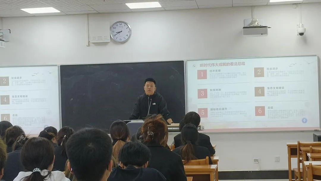 学院团委书记崔哲老师以“中国特色社会主义伟大成就”与“传承红色基因”为题目分别从中国特色社会主义取得的伟大成就从“经济建设”“政治建设”“文化建设”等多方面进行团课讲授,让大家深刻认识到团课对于个人成长和国家发展相关联的积极作用。使学员们深入的了解了这一伟大成就,同时倡导同学们学习社会主义核心价值观,弘扬中华优秀传统文化。