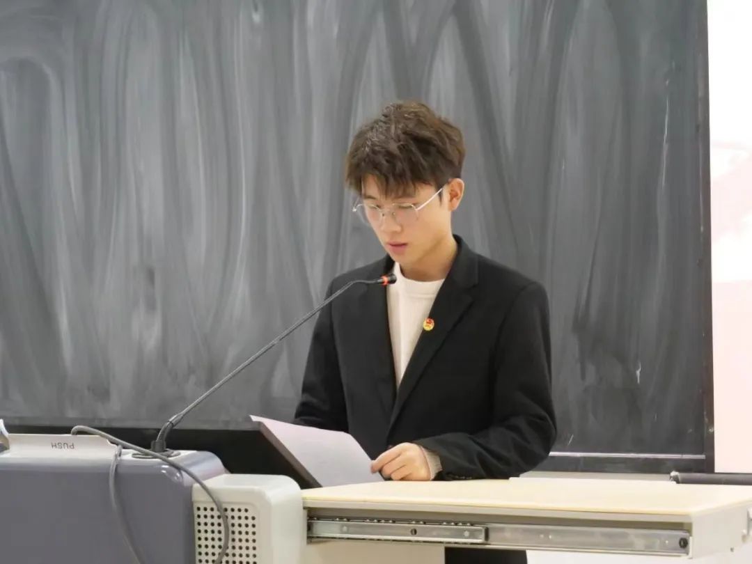 优秀团干部杨安员发言,他用自身过去一年的经验阐述身为团干部的职责和使命,并希望新一届学生干部能够坚守初心,凝聚学生会干部队伍力量,砥砺前行。