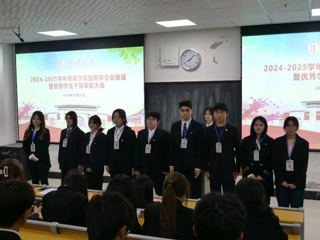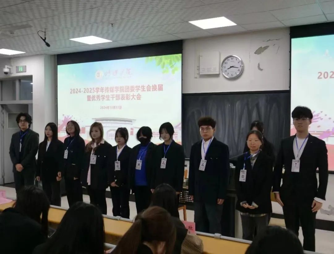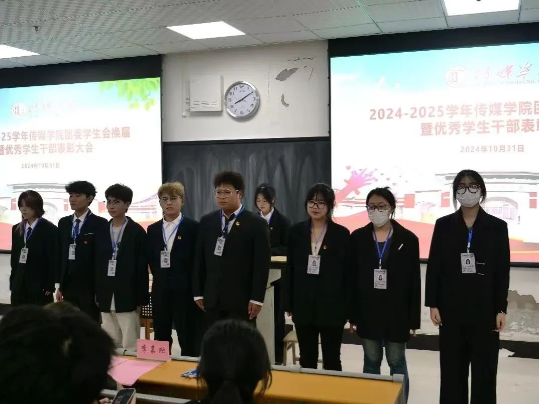 为推进学院学生组织建设,充分发挥学生干部职能。10月31日晚上,传媒学院在138教室召开团学组织换届大会与优秀学生干部表彰议程。传媒学院团委书记崔哲、专职辅导员李嘉欣、学院团委、学生分会,第二课堂,新媒体运营中心全体成员参加此次会议,会议由2024级戏美专业学生刘天姣主持。