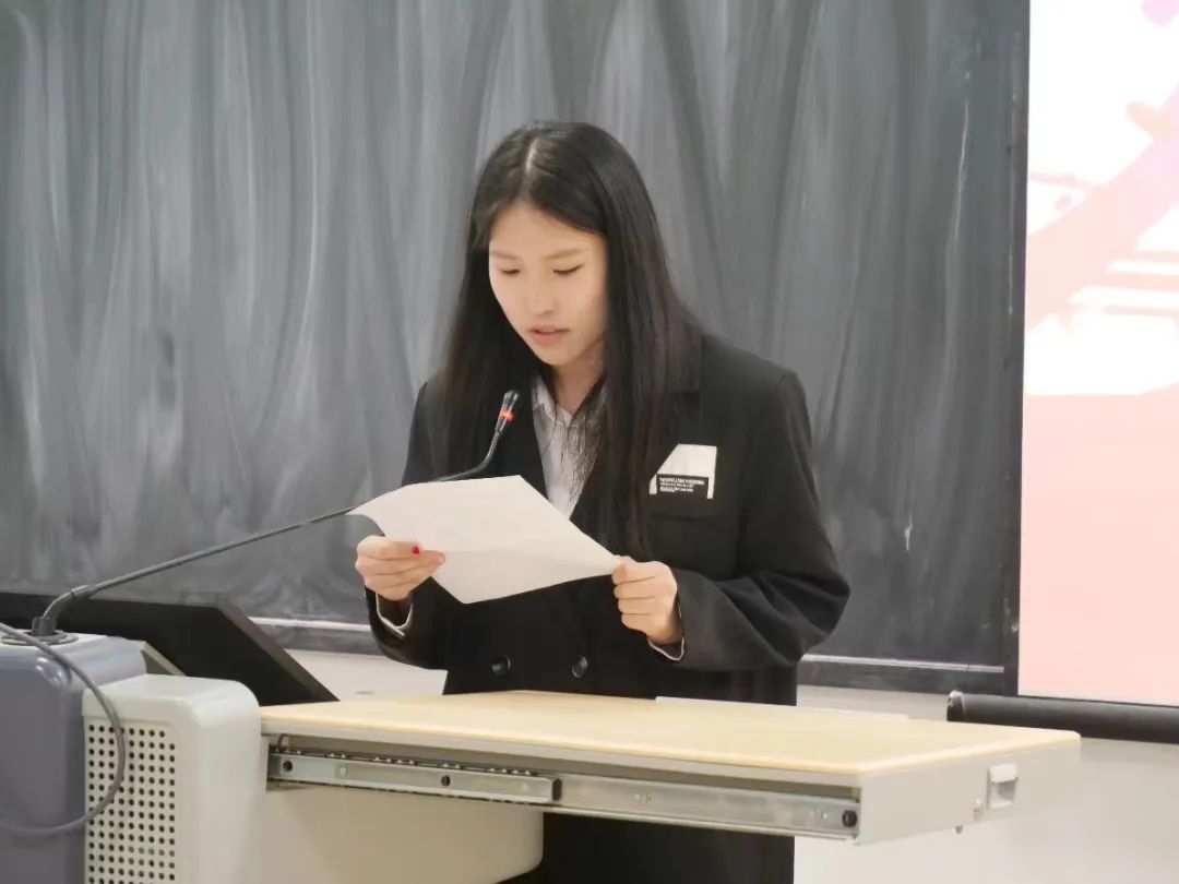 李嘉欣老师进行发言并宣读2024-2025学年新一届新媒体运营中心成员名单,并颁发工作证。