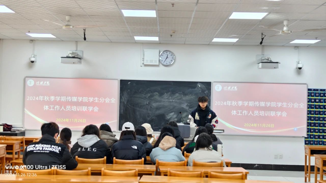 为了学习巩固陕西省学联学生会组织深化改革措施成果,贯彻落实习近平总书记关于青年工作的重要思想,不断增强学生会组织的政治性、先进性、群众性。11月26日,我院在104教室举行了2024年秋季学期传媒学院学生会组织全体工作人员培训会议。会议由执行主席张力鉴主持。