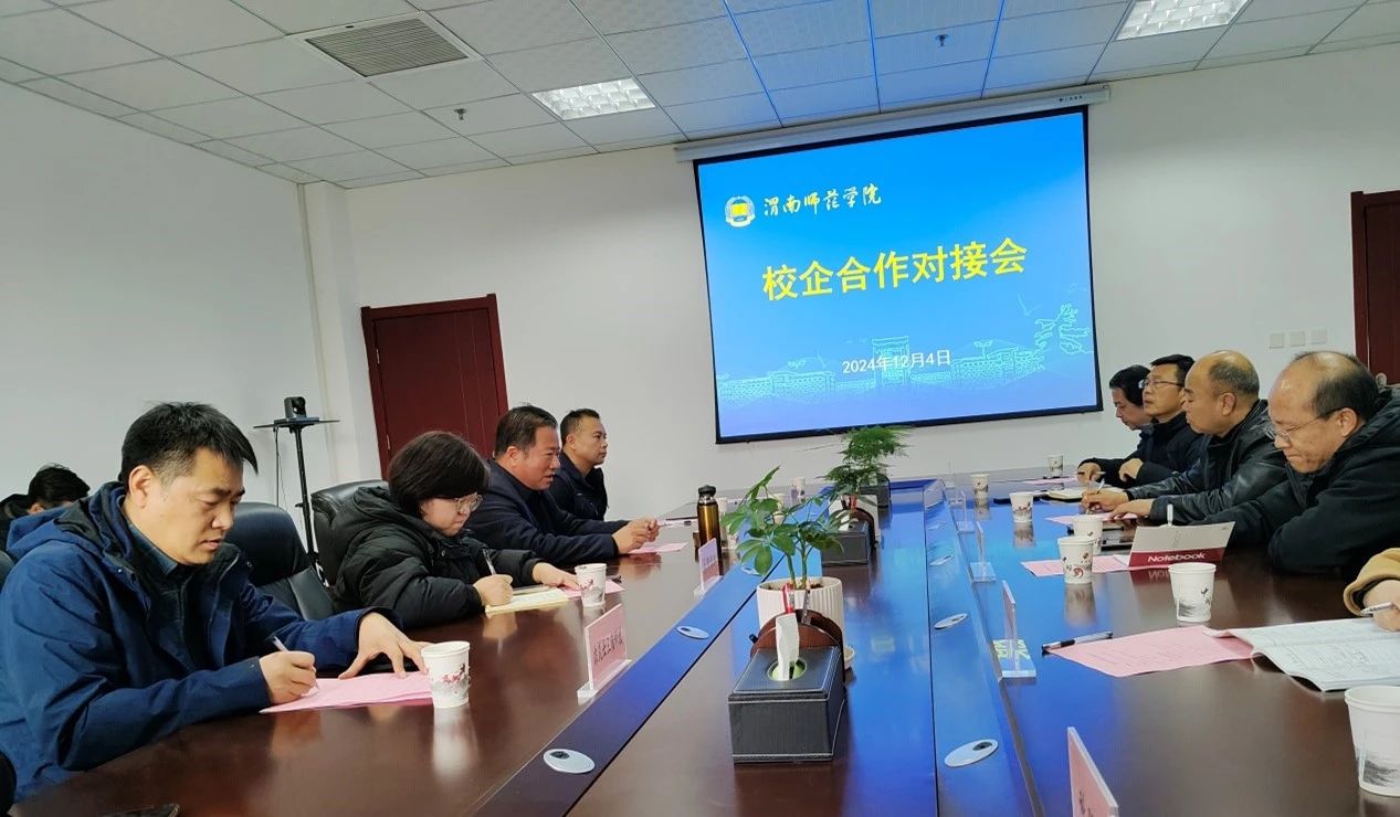 2024年12月4日下午,渭南师范学院校企合作对接会在富平校区行政楼召开。陕西红星美羚乳业股份有限公司、富平永辉现代农业发展公司、陕西云集柿业有限公司、陕西非凡士三维科技有限公司代表,传媒学院、经管学院、环生学院和美术学院负责人,博士教师参会。会议由副校长卢爱刚主持。