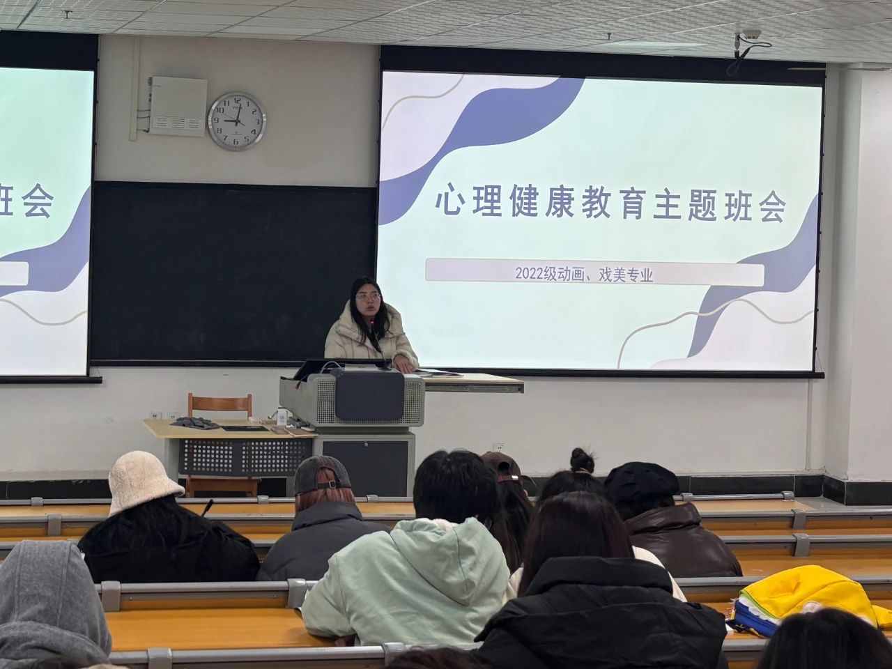 本次班会活动辅导员组织观看心理健康主题微课,针对不同年级,分析可能存在的心理健康问题,重点讲解如何应对压力、了解自我、调节情绪,鼓励同学们要主动培养自身积极心态,寻找适应自身的成长节奏。