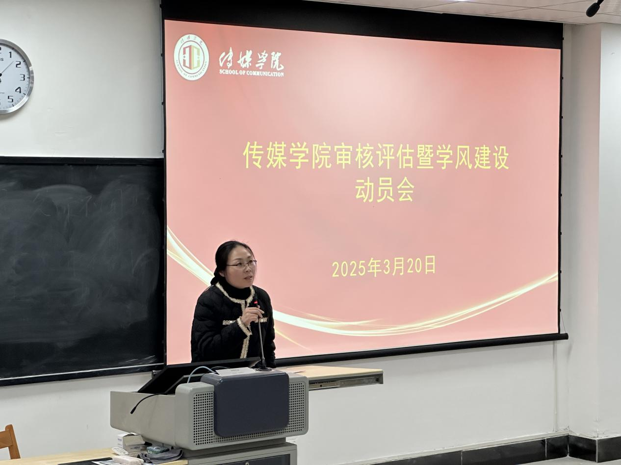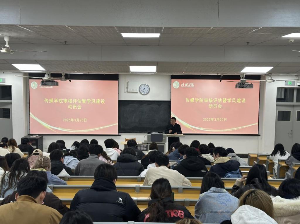 为强化学风建设,营造优良育人环境,做好本科教育教学模拟审核评估工作, 3月20日晚7点,传媒学院在138教室召开本科教育教学审核评估暨学风建设动员会,院长曹熙斌,党总支副书记周双,教师代表,班团干部,入党积极分子,奖助学金获得者等200余名师生参会,会议由副院长侯君奕主持。