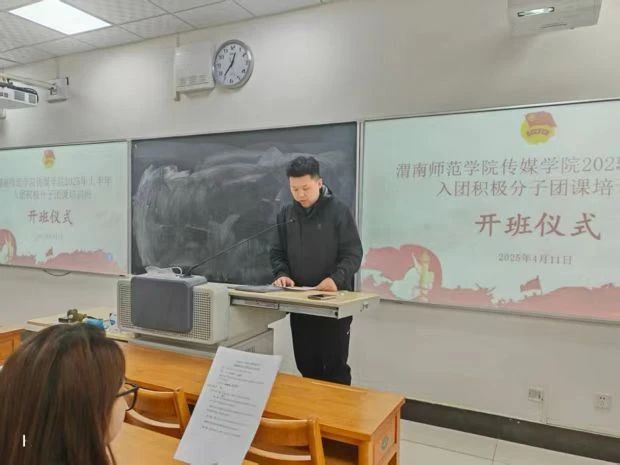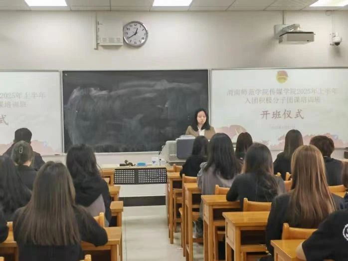 为切实提升青年团员的思想道德修养以及理论素质,进一步加强大学生思想政治教育,4月11日中午,传媒学院团委2025上半学年团课培训开班仪式在108教室举行,此次团课由学院团委组织部杨浩然同学主持,传媒学院团委书记崔哲老师进行主讲,学院团委组织部及全体入团积极分子参加本次会议。