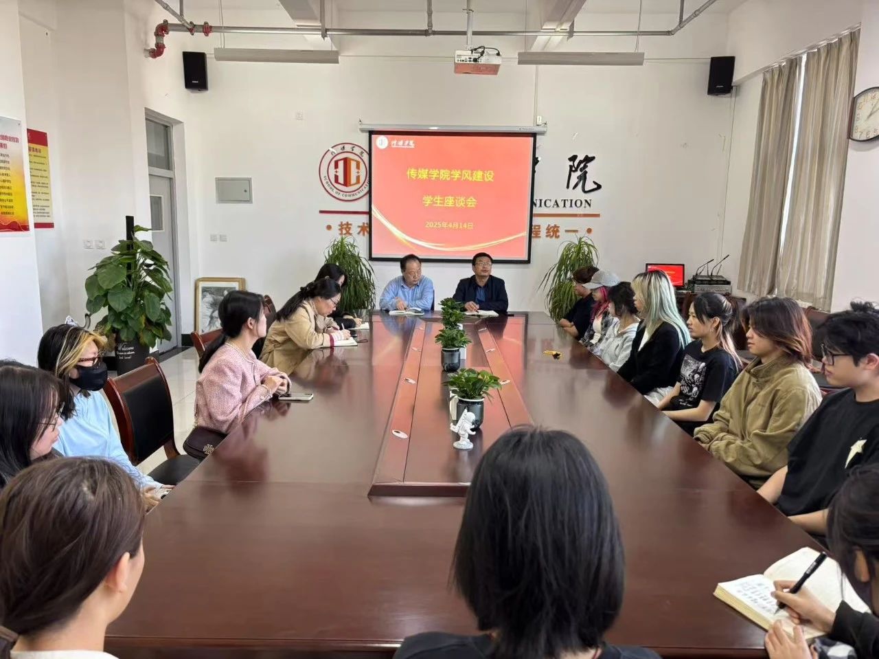 为进一步加强学风建设,严格课堂管理制度,提升学院教学质量。4月14日,传媒学院在105会议室召开学风建设学生座谈会。学院党总支书记田康顺、党总支副书记周双、副院长侯君奕、专职辅导员以及23、24级学生代表参加,会议由院长曹熙斌主持。