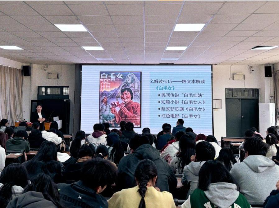 孟老师以柏拉图《理想国》中的"洞穴寓言”为切入点,巧妙地将哲学思考与电影艺术相结合,引导同学们深入思考电影与真实的关系。也梳理了电影诞生史,并结合《火车进站》《月球旅行记》《花样年华》等经典影片进行实例分析,让同学们直观感受到电影从技术发明到艺术表达的演变历程。围绕”如何看懂电影“这一问题,孟老师以《钢的琴》《阿甘正传》《白毛女》等影片为例,指出要知人论世,在观影过程中,紧密结合导演的创作背景与影片所处的时代语境展开剖析,以此深化对影片的理解:要运用专业理论知识进行意识形态分析,洞悉影片潜藏的价值取向:要开展跨文本解读,对比同类或相关文本,从多个维度挖掘影片的深层内涵。此外,她还精心推荐了多部涵盖多元题材的影片,为大家奉上了一场跨越时空的光影盛宴。