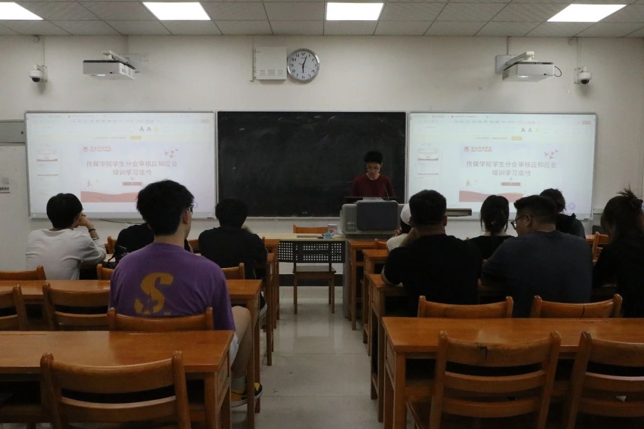 为进一步扎实本科教育教学审核评估工作,提升学生干部的综合素质与工作能力,确保学生分会各项工作规范,高效运行,顺利通过上级组织审核,传媒学院学生分会于5月19日晚在108教室开展学生分会审核应知应会培训学习活动。
