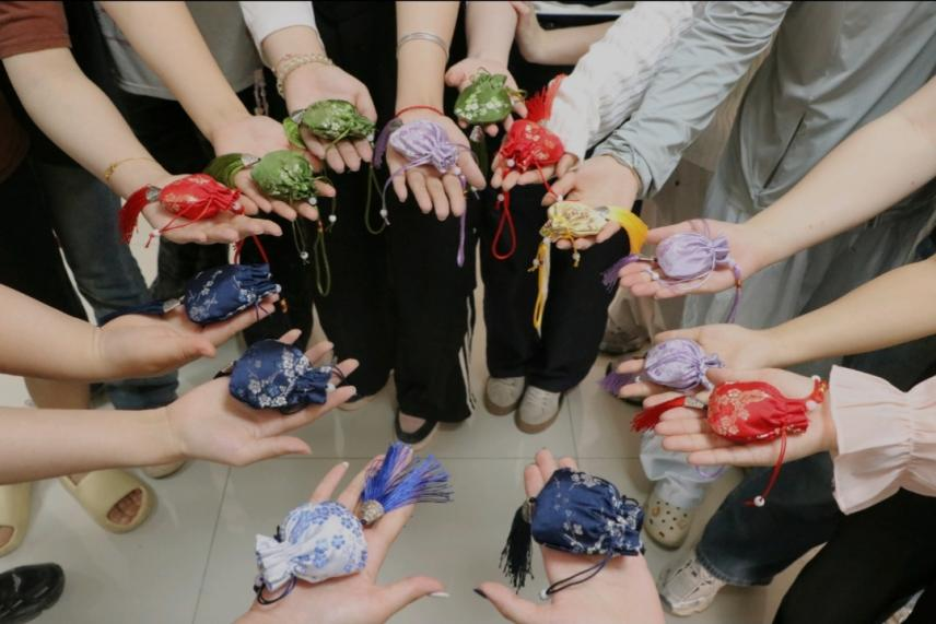 5月22日下午,传媒学院在富平校区大学生心理健康中心开展“闻艾香,佩香囊”手工疗愈活动。学院40余名学生参与本次活动,同学们纷纷挑选自己喜欢的香囊,填充艾草、绕线成型,将传统工艺与实用价值完美融合。在一针一线的实践中,感受传统工艺魅力,收获心灵的成长与滋养。