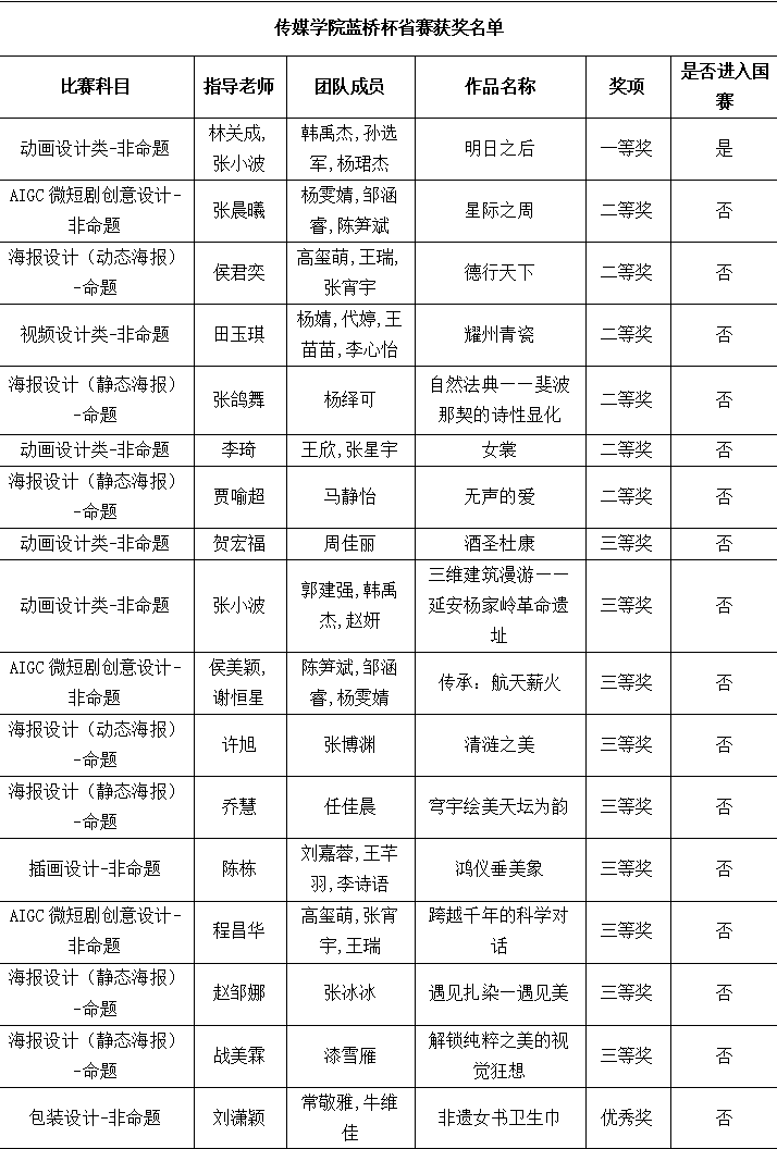 自大赛启动以来,学院在教务处的鼎力支持下,通过周密组织与广泛动员,师生参与热情高涨。经层层筛选,学院从征集的40余件参赛作品中遴选出20件精品参与省级角逐,最终1项作品斩获省级一等奖并成功入围全国总决赛。这一佳绩不仅是对创作团队专业能力的充分肯定,更是学院教学成果与人才培养质量的有力见证。