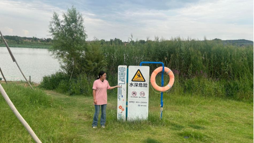 在水边,同学们积极参与安全宣传。指着“水深危险”标识讲解,让“河道水深、禁止靠近、垂钓、戏水”等警示标语深入人心。这是对生命的负责,守护公园游玩者的安全,让美好风景不被意外打扰。