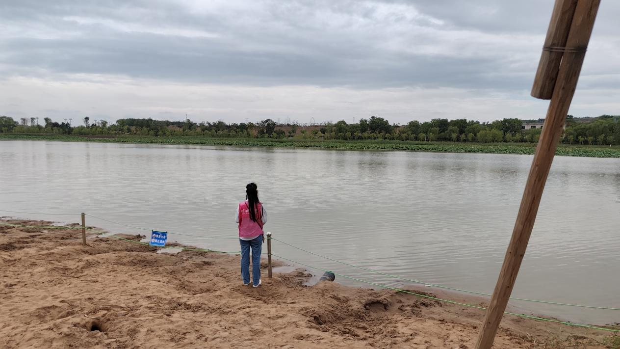 沿着路径前行,湿地湖泊映入眼帘。一位队员驻足远眺,水色与天色交融,岸边植被摇曳,勾勒出自然的宁静。这方水域,是湿地生态的心脏,滋养着无数生命,也让我们的心,瞬间远离喧嚣,沉浸在自然的怀抱。