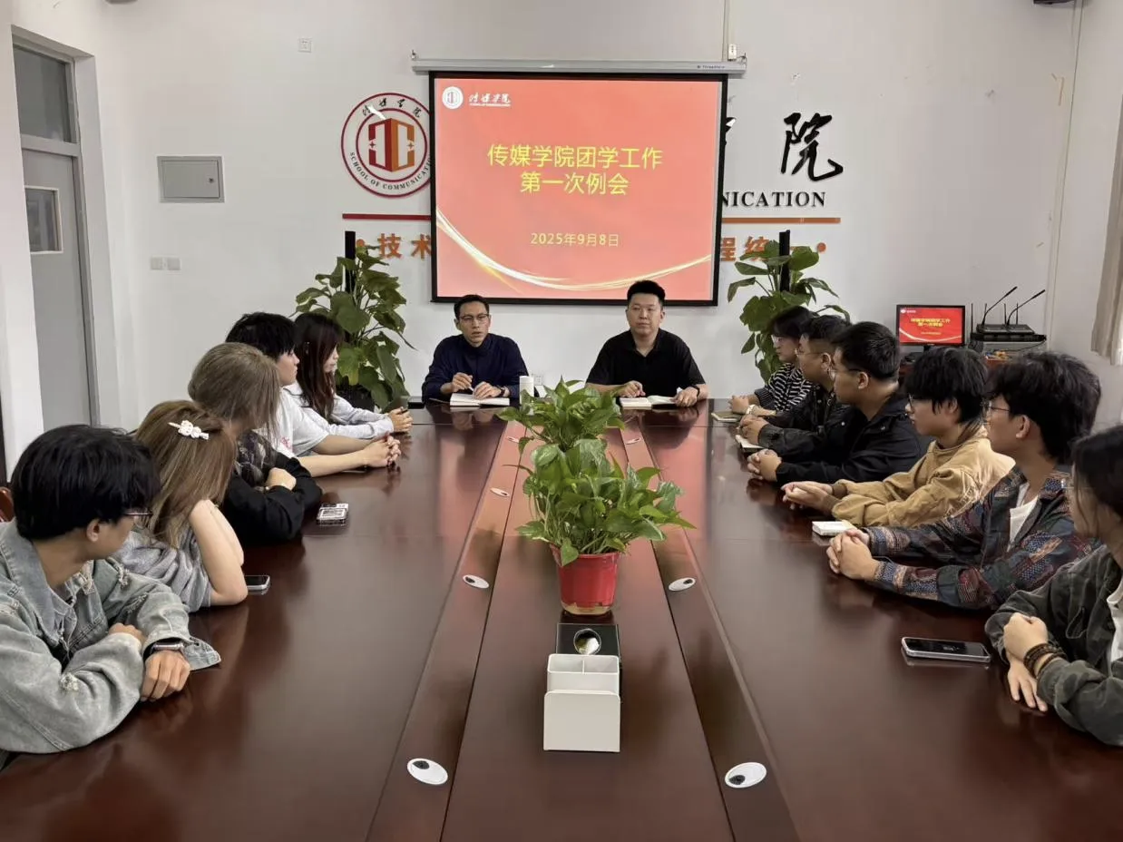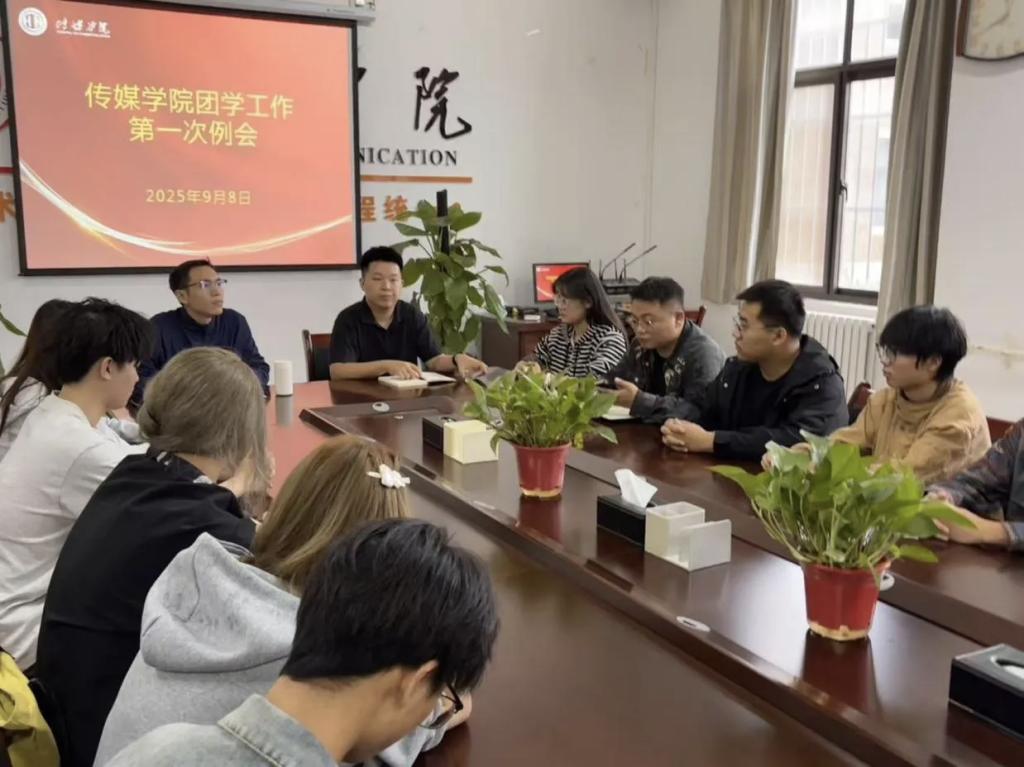 为明确新学期团学工作方向,凝聚组织力量,增强传媒学院团学组织工作能力和服务意识,确保本学期团学各项工作扎实推进。9月8日下午,传媒学院新学期第一次团学工作例会在教学楼105会议室召开。学院团委书记崔哲、专职辅导员段璟康,团委学生分会全体成员参会。本次例会由崔哲主持。