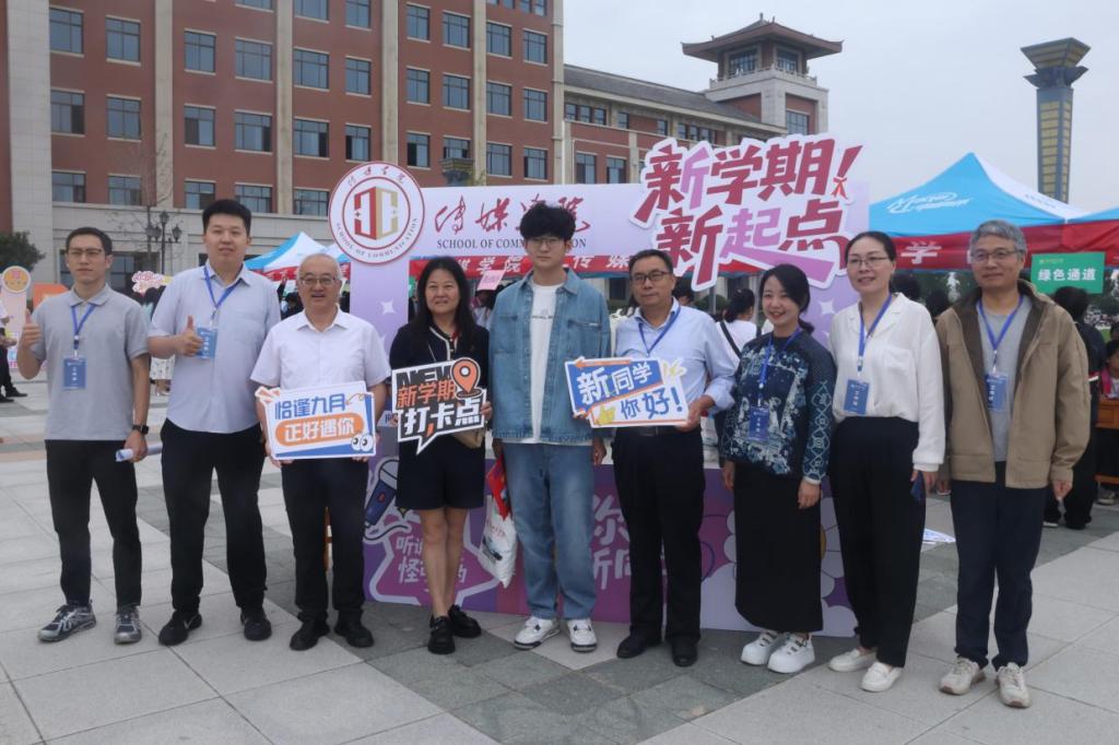 欢迎各位新同学加入传媒学院!初次相逢,我们以镜头为笔,将灿烂笑容书写于传媒事业的扉页。心怀理想,行囊中满载对世界的深入探问与无限好奇。“记录时代,发声未来”——这面属于传媒人的旗帜,正于风中昂扬飘扬。年轻的脚步迈入这片创意奔涌的热土,目光坚定,胸怀对未知叙事的热切渴望。“咔嚓——咔嚓——”快门声接连响起宛如谱写出一曲轻快的序章,定格此刻初逢的生动画面。