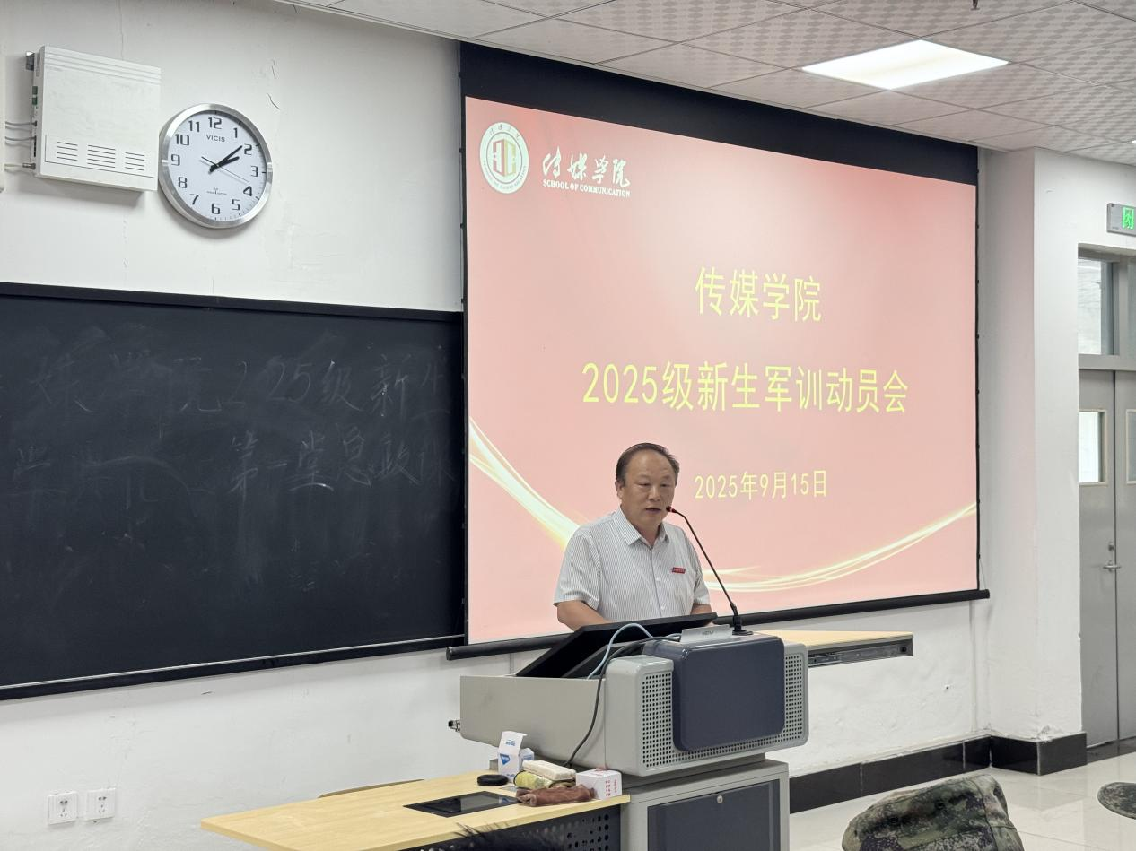 为确保2025级新生军训工作顺利开展,9月15日下午,传媒学院在教学楼138教室召开2025级新生军训动员会。学院党政负责人、参训教官、新生辅导员及全体2025级新生参加会议,会议由学工办负责人崔哲主持。