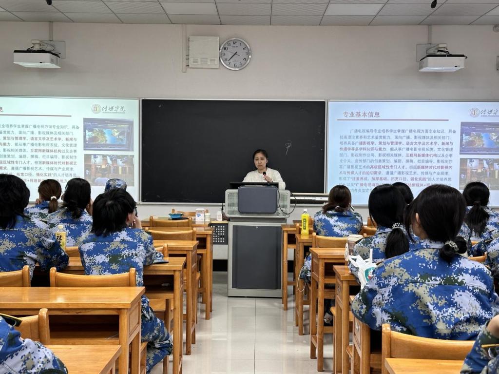 广播电视编导专业负责人尹晓利为2025级新生系统梳理了专业内涵、发展前景与人才培养目标,详细解读了以“厚基础、重实践、求创新”为特色的课程体系。通过展示师资力量、实验室资源及校内外实践平台,充分展现了为学生成长成才提供的坚实保障。她特别强调,大学学习的核心在于从“被动接受”到“主动探索”的转变,鼓励新生充分利用学院优质资源,做好学业规划,勤于思考,勇于实践,尽快适应大学生活,为未来发展奠定坚实基础。