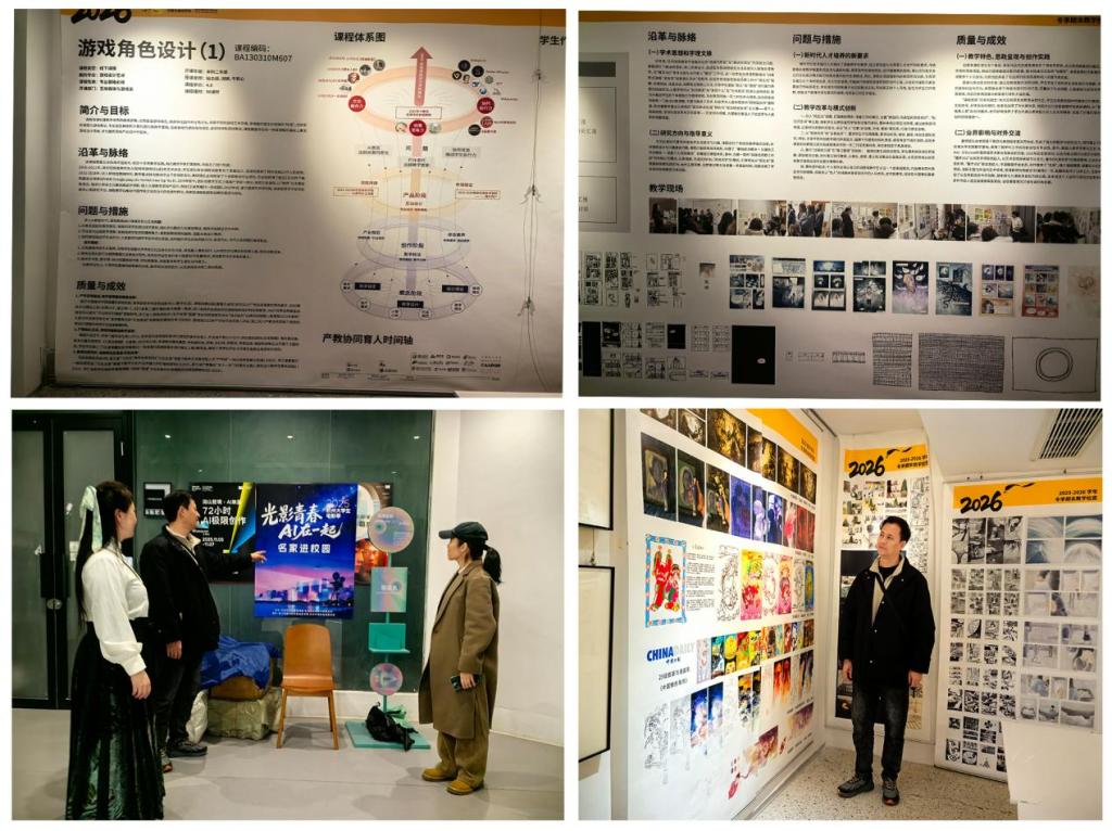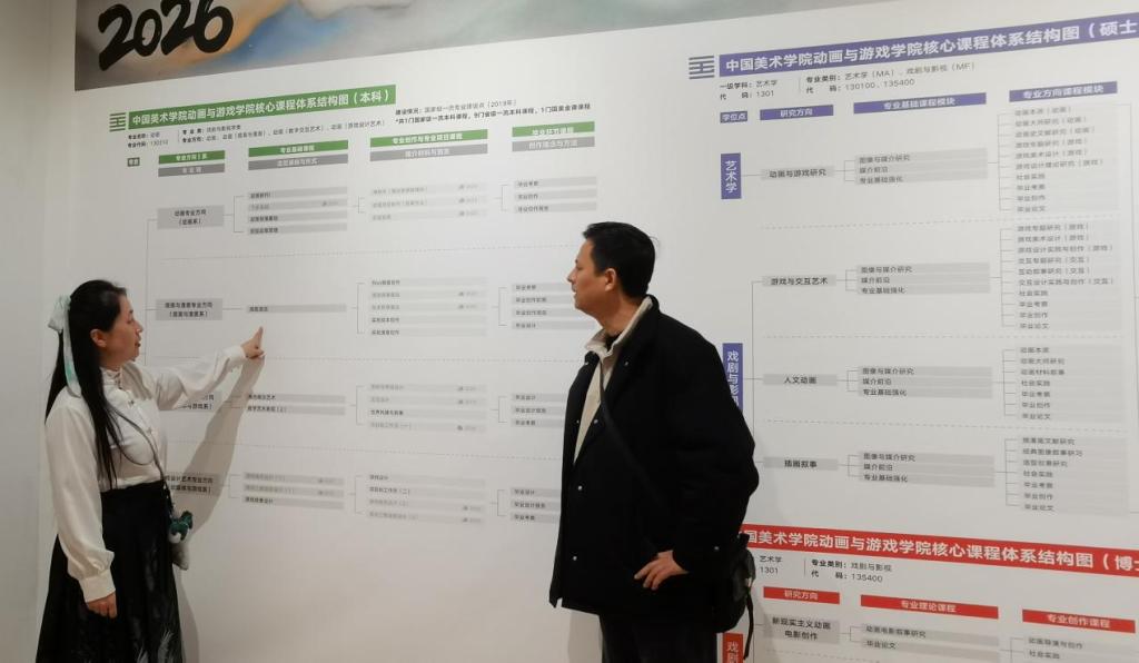 1月14日下午调研团队先后考察了中国美术学院动画与游戏学院、电影学院,恰逢两个学院的期末作品展,调研团队仔细研读了动画与游戏学院的人才培养及核心课程体系,观摩该院学生课堂实训成果展览。随后在电影学院展厅聆听该院博导的现场作品点评课,以现场交流感受的形式完成了一次专题调研,使调研团队成员受益匪浅。