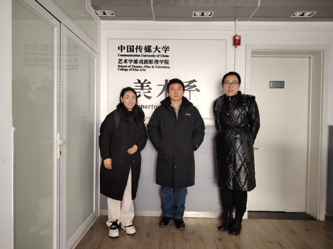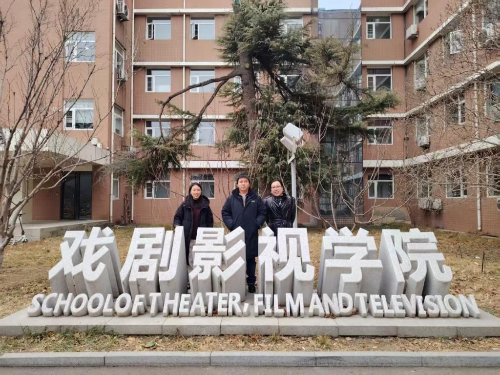 1月14日,调研团队前往中国传媒大学戏剧影视学院美术系进行深度交流。在戏剧影视学院周艺文教授的热情接待下,团队实地走访了先进的教学空间与专业实验室,直观感受了国内顶尖传媒院校的实践教学环境。
