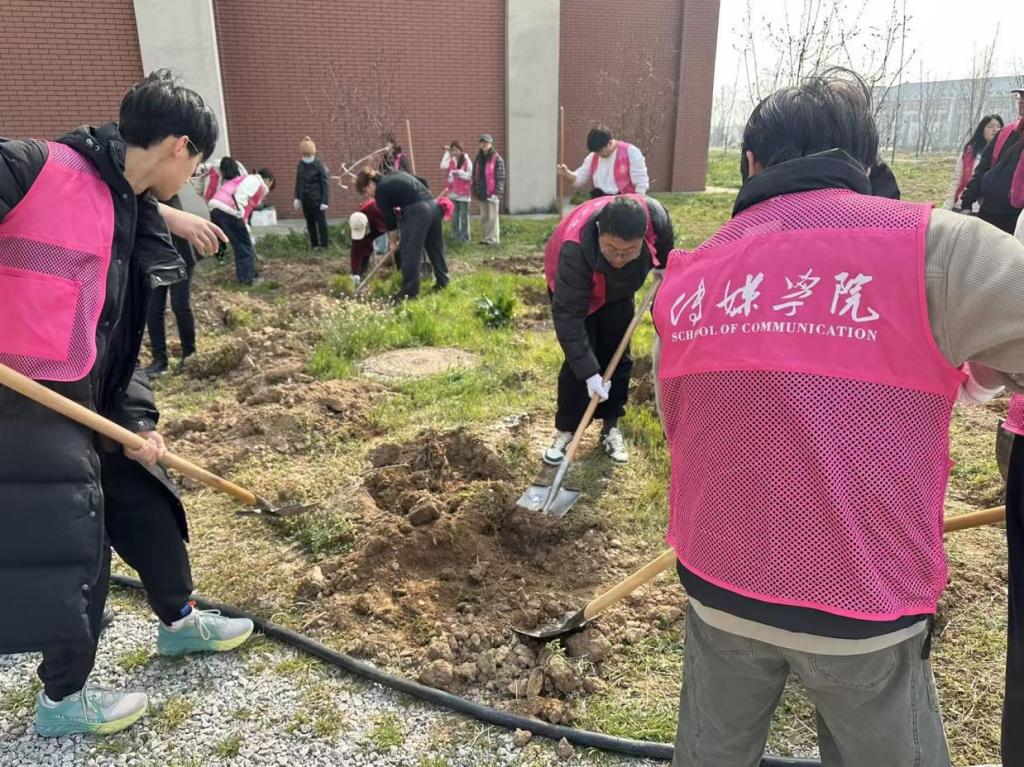 3月12日,传媒学院在富平校区组织开展了2026年春季校园植树活动。党委委员、宣传部部长李明敏参加传媒学院植树活动。学院党总支书记朱芳转,副书记周双,副院长贺宏福、侯君奕,全体科级干部及辅导员、学生代表40余人共同参与此次植绿实践。