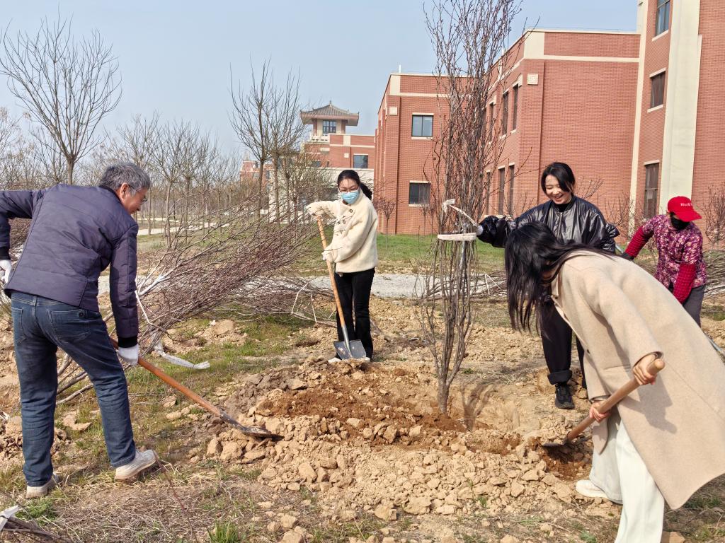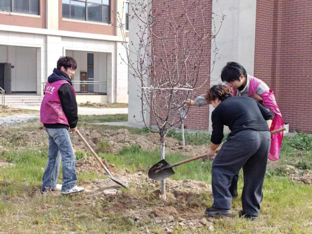 活动当天,在后勤人员的专业指导下,学院师生分工明确、默契配合,干劲十足。教师和学生党员充分发挥先锋模范作用,带头冲锋在植树一线,展现出勇于担当、团结协作的良好精神风貌。师生齐心协力,挥锹铲土、扶苗填坑、踩实浇水,每一个环节都有条不紊,将一棵棵树苗稳稳植入土中,为校园增添了一片新绿。