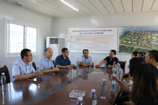 党员教师为建设一线的工作人员送去我院党员师生精心准备的消暑降温慰问品,并在富平校区管委会党员活动室与管委会党支部书记徐永弟、主任田康顺、副主任郭智辉等负责同志分别就基层党建与思想教育、富平校区的整体建设规划、施工进度,以及下一步搬迁准备等相关工作进行了座谈和交流。管委会负责同志对我院师生的关心与支持表示感谢,对高质量、按工期完成富平校区建设任务充满信心。我院党员教师对无视暑热、持续奋战在富平校区建设与管理一线的工作人员表示敬意,认为这种不怕苦、不畏难的奋斗与奉献精神弥足珍贵、值得师生学习。