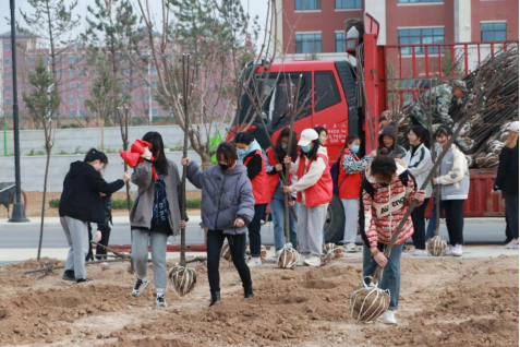 阳春三月,新绿初绽。3月25日上午,传媒学院党总支师生党员、发展对象、积极分子、阳光志愿者,团干部等100余人在富平校区开展以“党建引领党旗红,义务植树添新绿”为主题的义务植树特色党日活动。本次活动是传媒学院党总支在富平校区组织开展的第二次绿化美化校园活动。