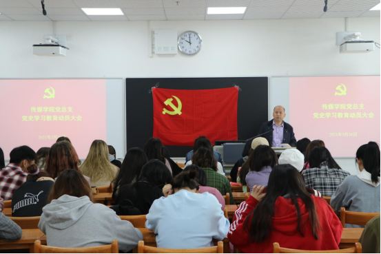 3月30日上午,传媒学院党总支在富平校区教学楼1106教室举行党史学习教育动员大会。学院党总支委员、处级领导班子、各支部委员、师生党员、发展对象以及积极分子80余人参加会议。